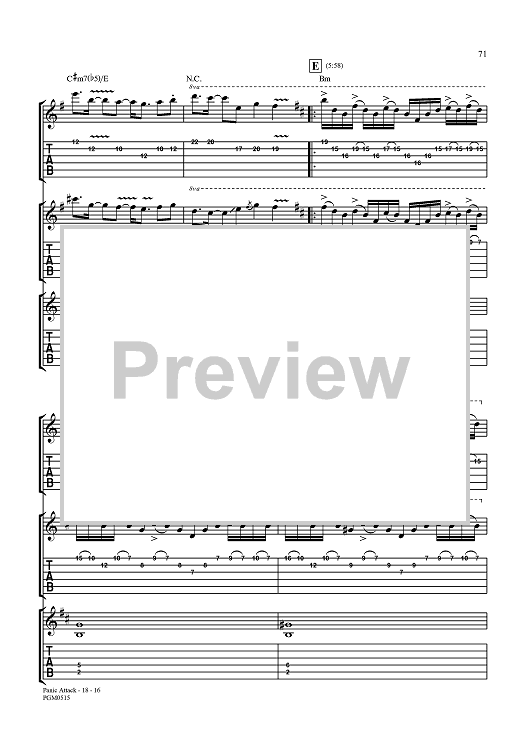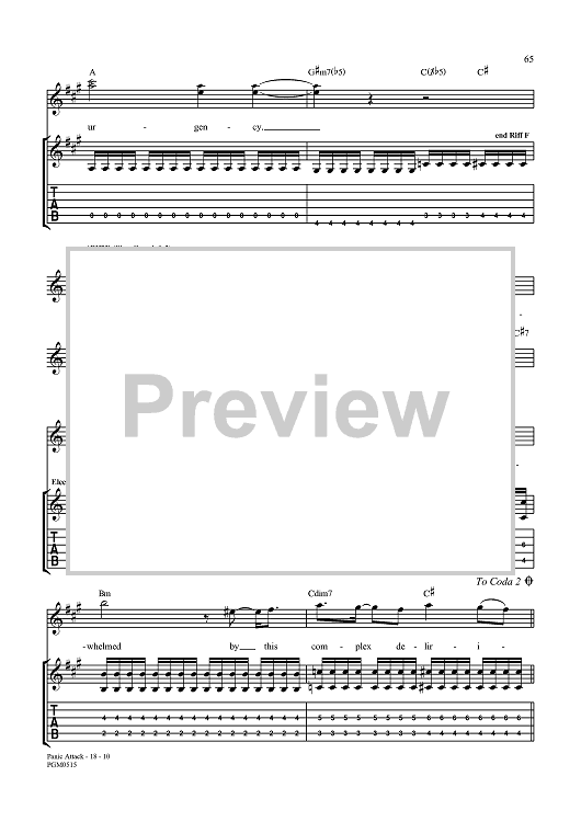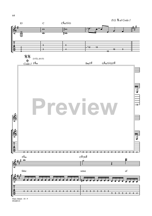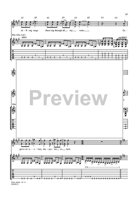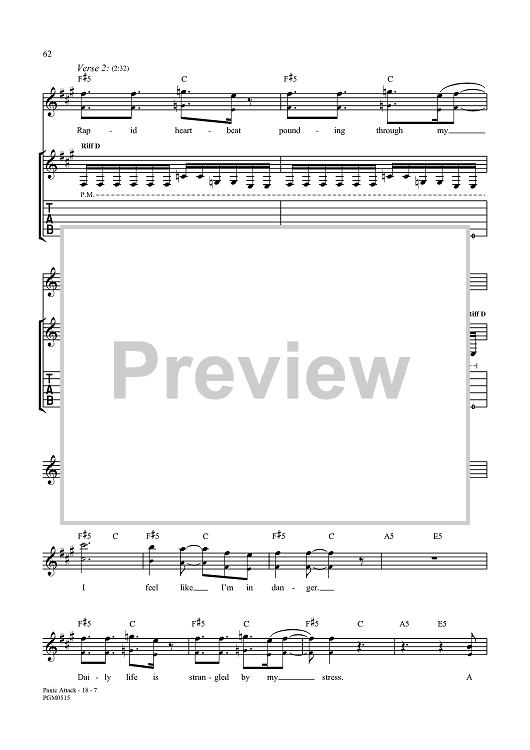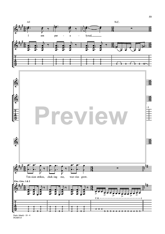 Digital Sheet Music for Panic Attack by John Myung, Michael Portnoy, Dream Theater, John Petrucci, Jordan Rudess, James LaBrie scored for Guitar Tab/Vocal; id:360015