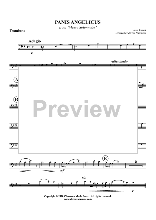 Digital Sheet Music for Panis Angelicus - from "Messe Solennelle" - Trombone by César Franck, Jarrod Hammons scored for Brass Quintet; id:426835