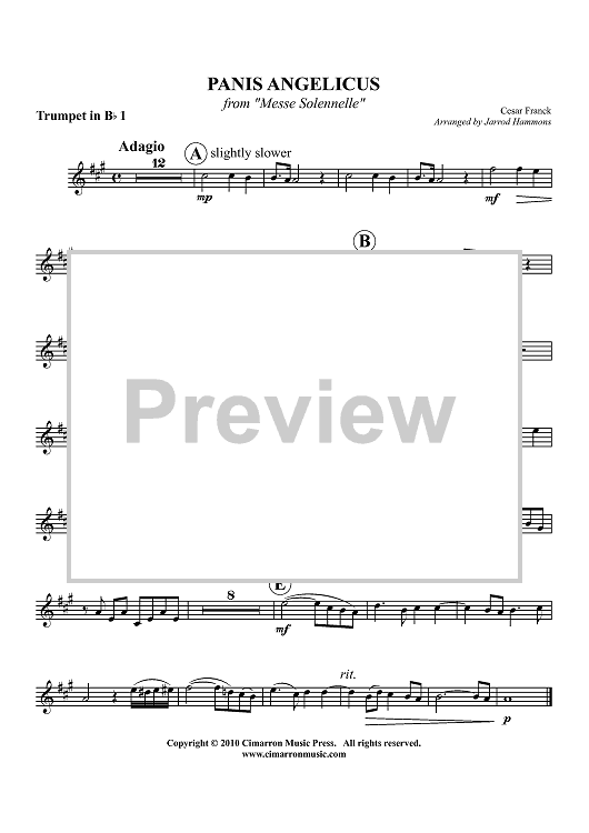 Digital Sheet Music for Panis Angelicus - from "Messe Solennelle" - Trumpet 1 in Bb by César Franck, Jarrod Hammons scored for Brass Quintet; id:426832