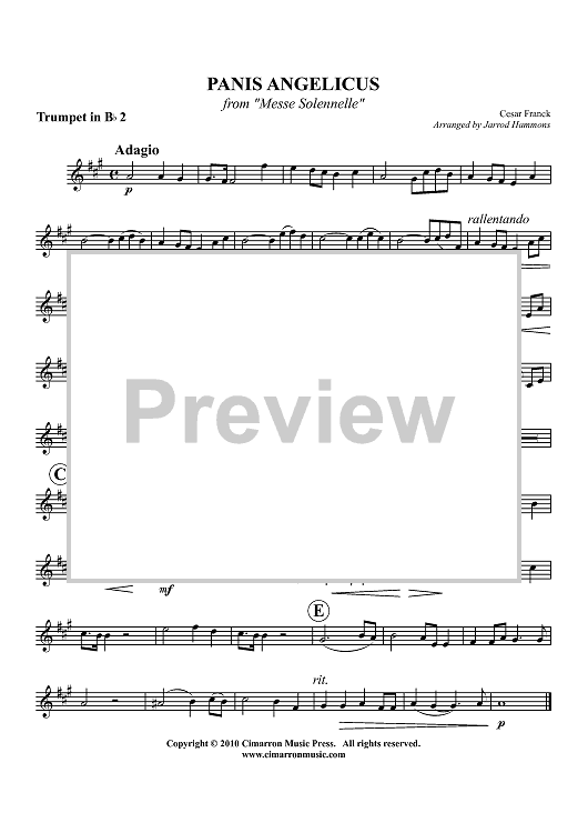 Digital Sheet Music for Panis Angelicus - from "Messe Solennelle" - Trumpet 2 in Bb by César Franck, Jarrod Hammons scored for Brass Quintet; id:426833