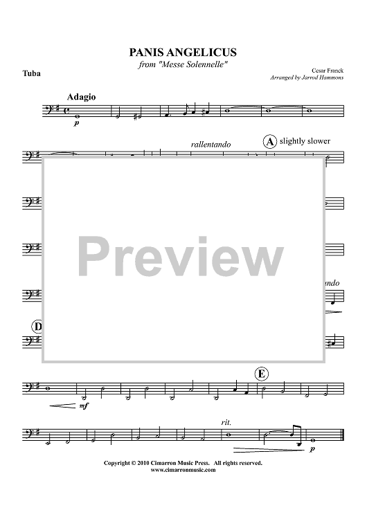 Digital Sheet Music for Panis Angelicus - from "Messe Solennelle" - Tuba by César Franck, Jarrod Hammons scored for Brass Quintet; id:426836