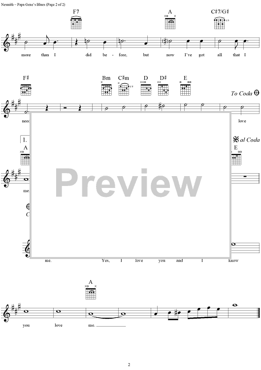 Digital Sheet Music for Papa Gene's Blues by The Monkees, Michael Nesmith scored for Lead Sheet; id:307927
