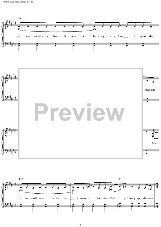 Digital Sheet Music for Papa Loved Mama by Garth Brooks, Kim Williams scored for Piano/Vocal/Chords; id:263819