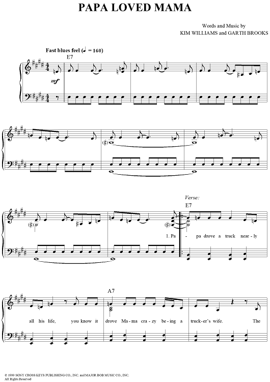 "Papa Loved Mama" Sheet Music by Garth Brooks