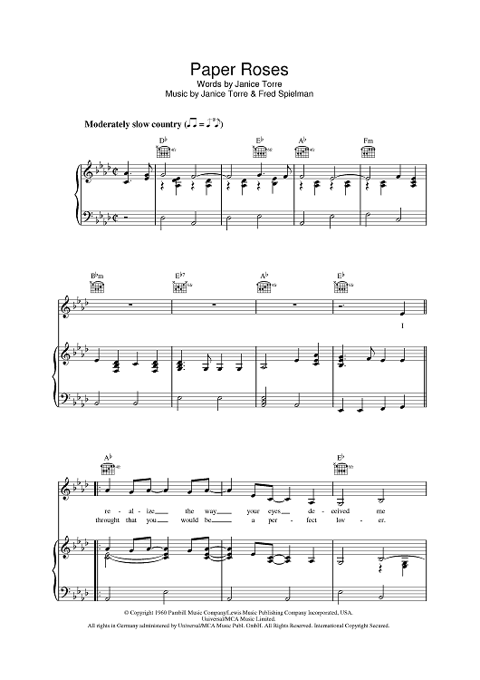 Digital Sheet Music for Paper Roses by Fred Spielman, Janice Torre scored for Piano/Vocal/Chords; id:394455