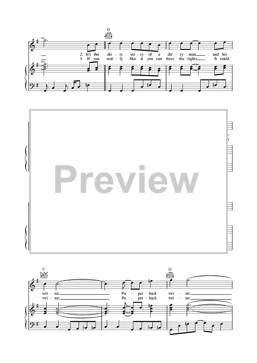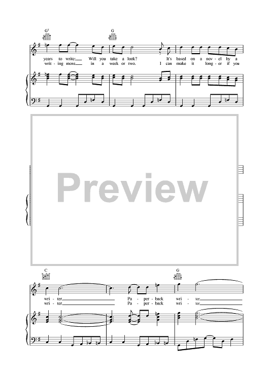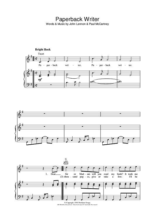Digital Sheet Music for Paperback Writer by Paul McCartney, The Beatles, John Lennon scored for Piano/Vocal/Chords; id:378983