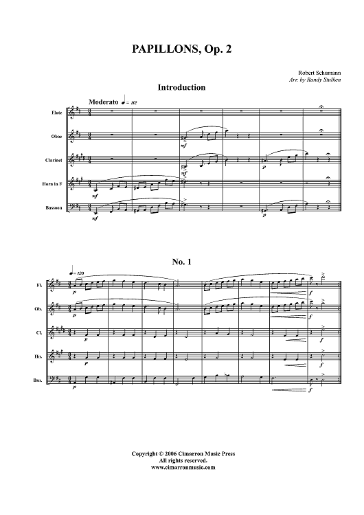 Digital Sheet Music for Papillons, Op. 2 - Score by , Robert Schumann, Randall Stulken scored for Woodwind Quintet; id:355387