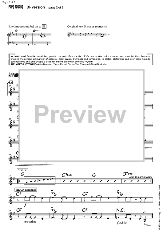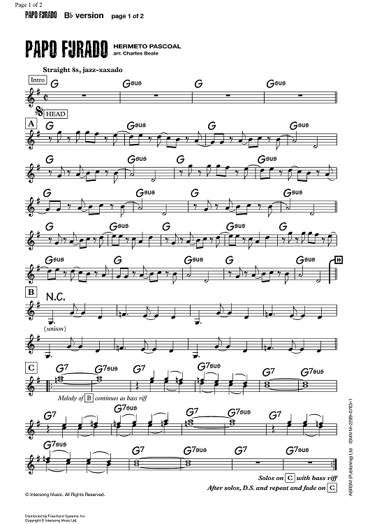Digital Sheet Music for Papo Furado by , Charles Beale, Hermeto Pascoal scored for B-flat Lead Sheet; id:355626