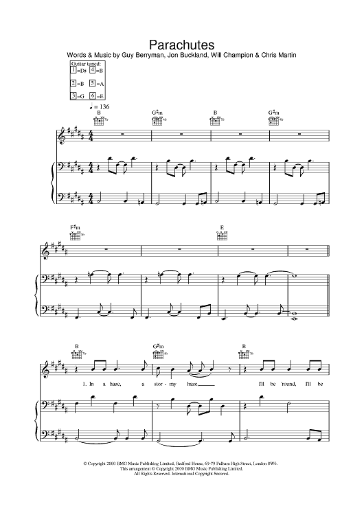 Digital Sheet Music for Parachutes by Coldplay scored for Piano/Vocal/Chords; id:377204