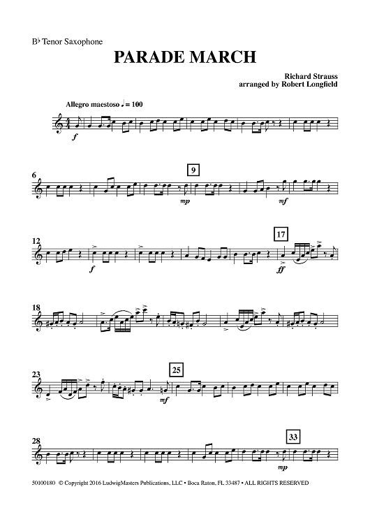 Digital Sheet Music for Parade March - Bb Tenor Sax by , Richard Strauss, Robert Longfield scored for Concert Band; id:461595