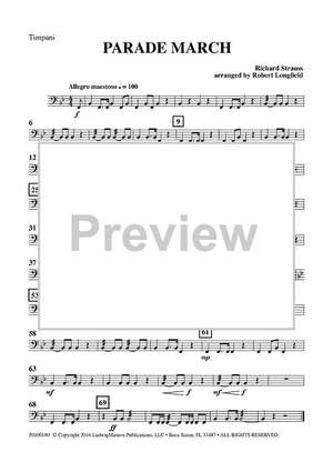 Digital Sheet Music for Parade March - Timpani by , Richard Strauss, Robert Longfield scored for Concert Band; id:461608