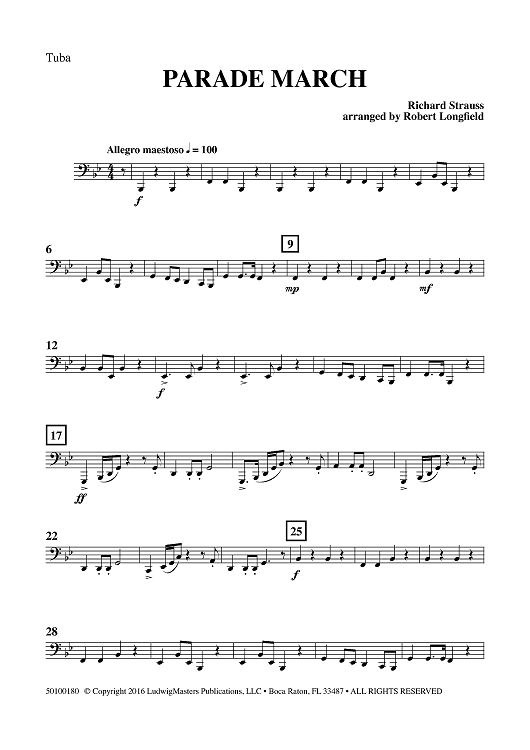 Digital Sheet Music for Parade March - Tuba by , Richard Strauss, Robert Longfield scored for Concert Band; id:461606