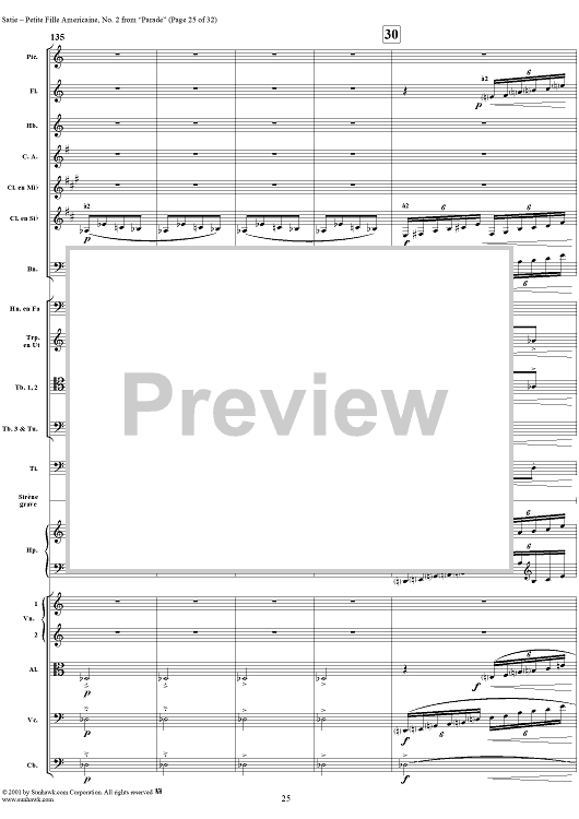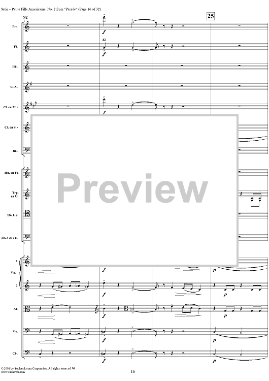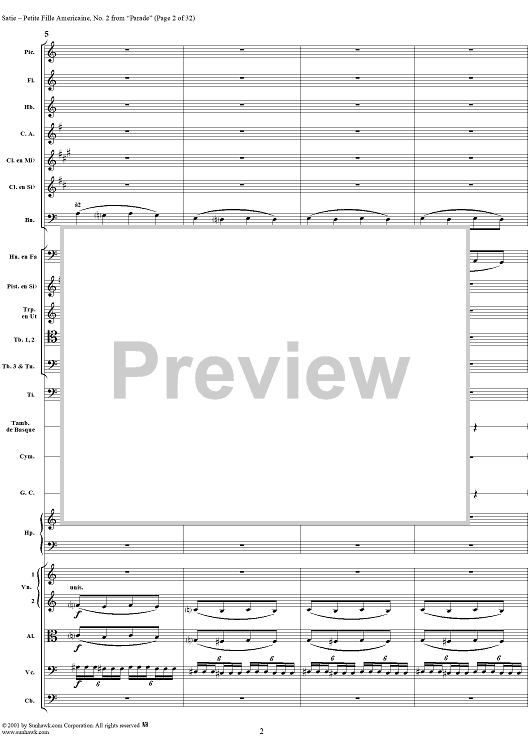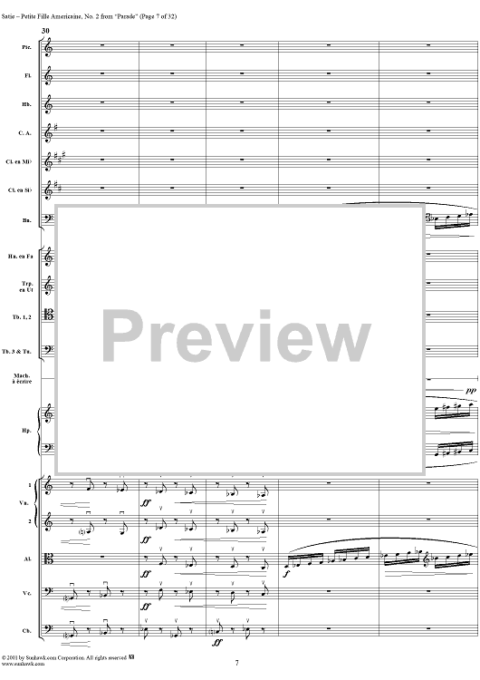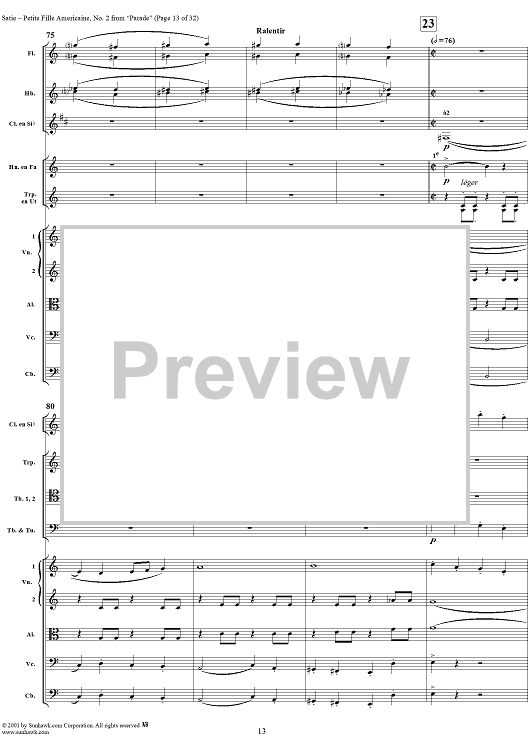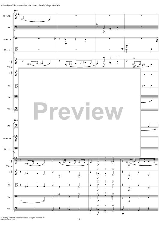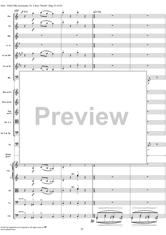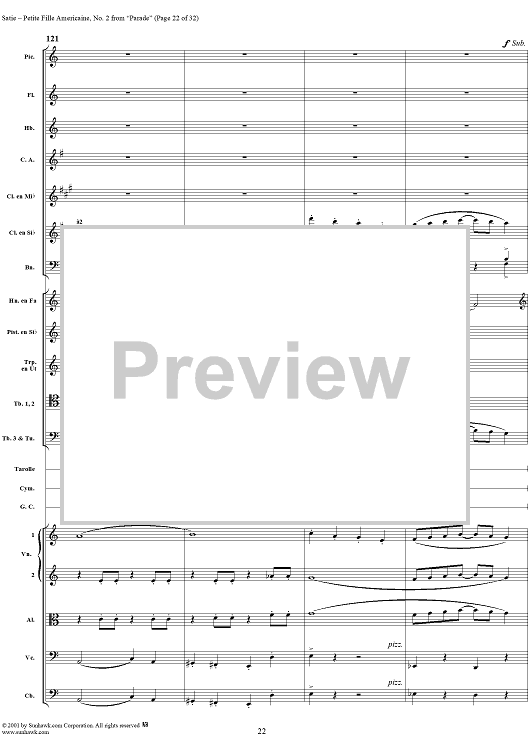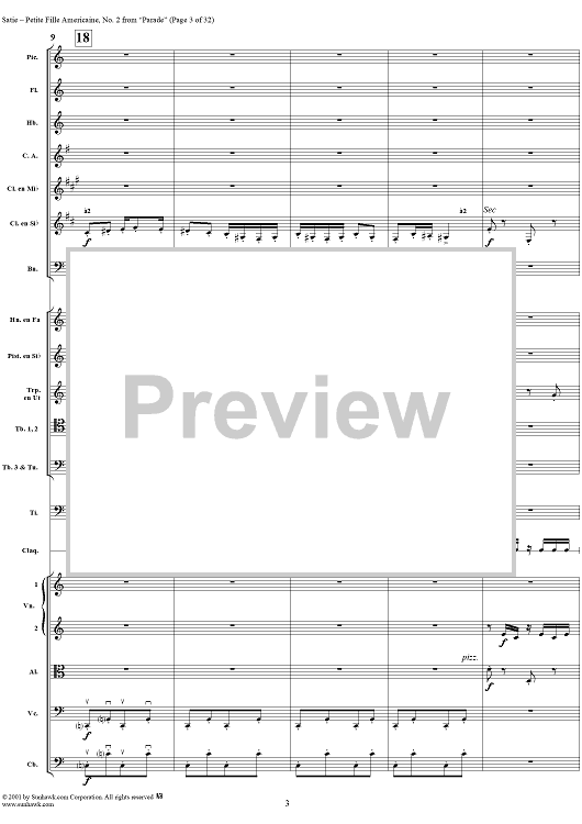 Digital Sheet Music for Parade: No. 2, Petite fille Americaine - Full Score by Erik Satie scored for Orchestra; id:256197