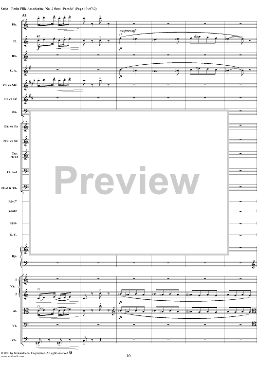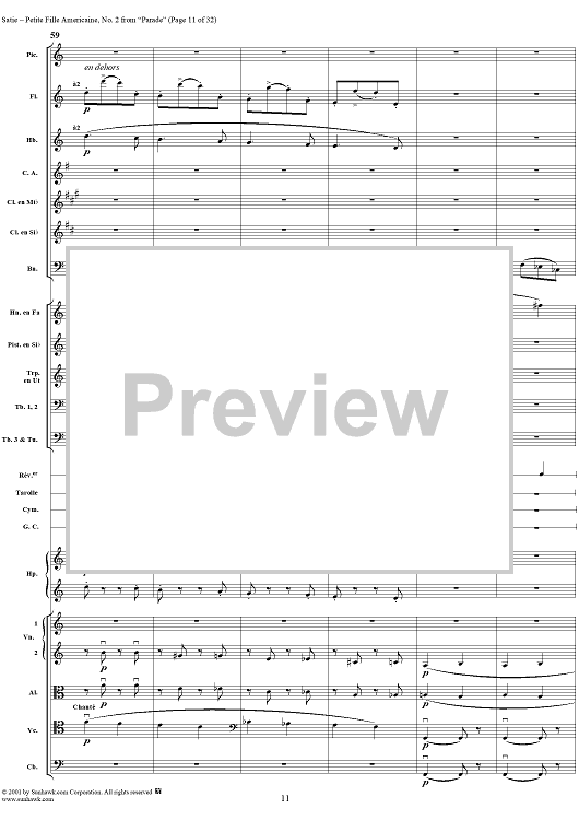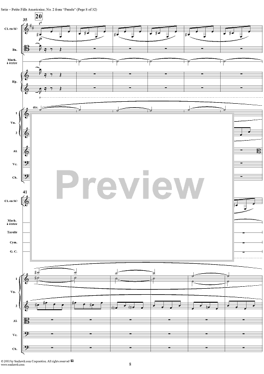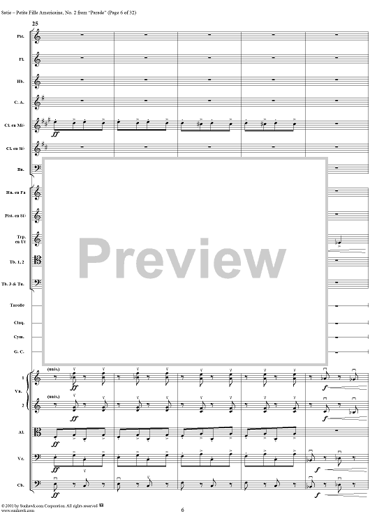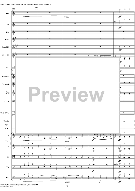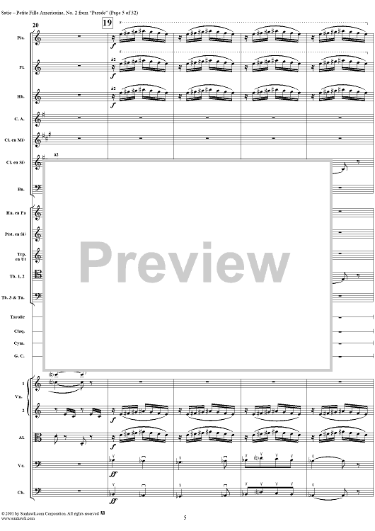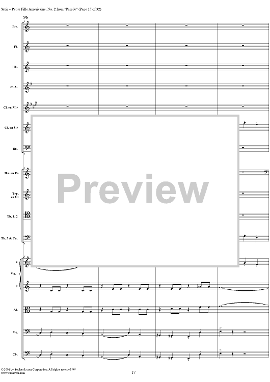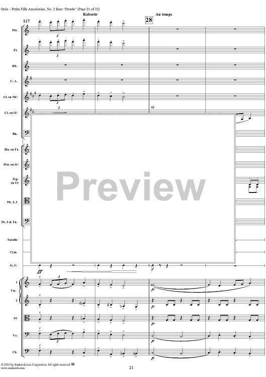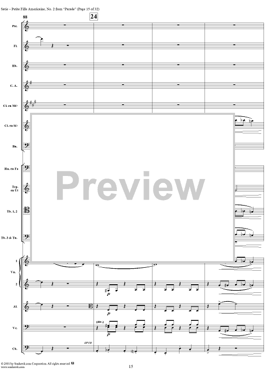 Digital Sheet Music for Parade: No. 2, Petite fille Americaine - Full Score by Erik Satie scored for Orchestra; id:256197