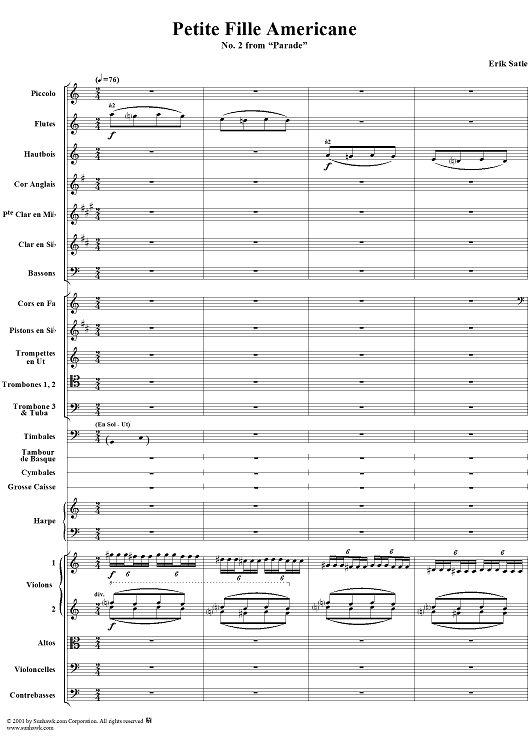 "Parade: No. 2, Petite fille Americaine - Full Score" Sheet Music by Erik Satie