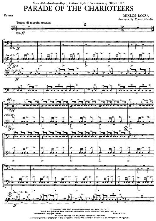 "Parade of the Charioteers (from Ben Hur) - Drums" Sheet Music by Miklos Rozsa