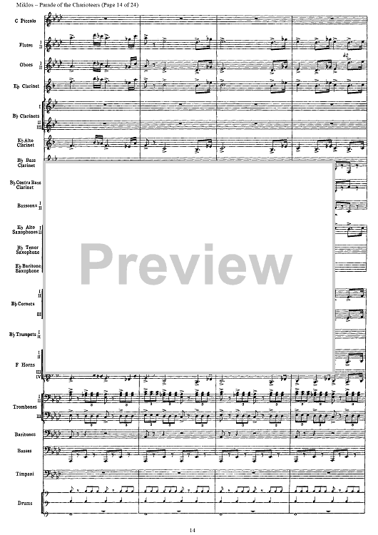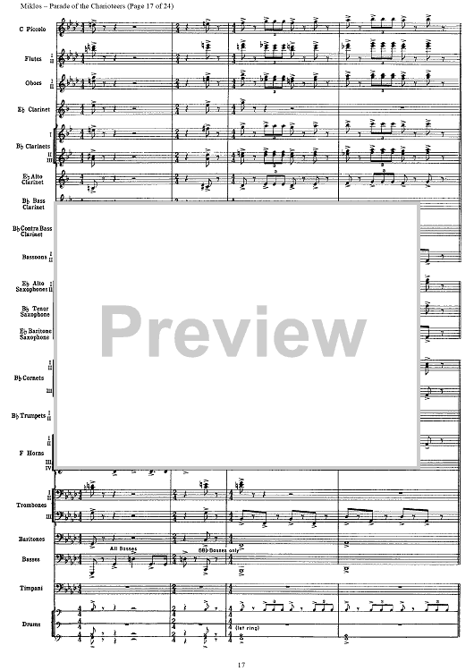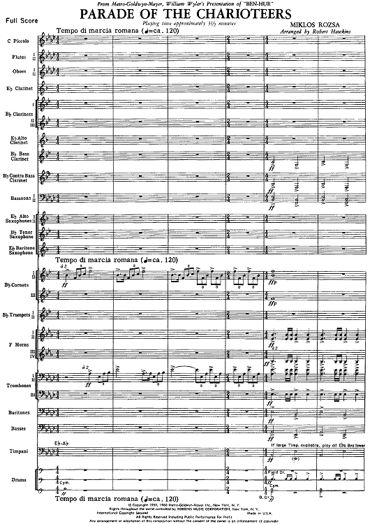 Digital Sheet Music for Parade of the Charioteers (from Ben Hur) - Score by , Miklos Rozsa, Robert Hawkins scored for Concert Band; id:176626