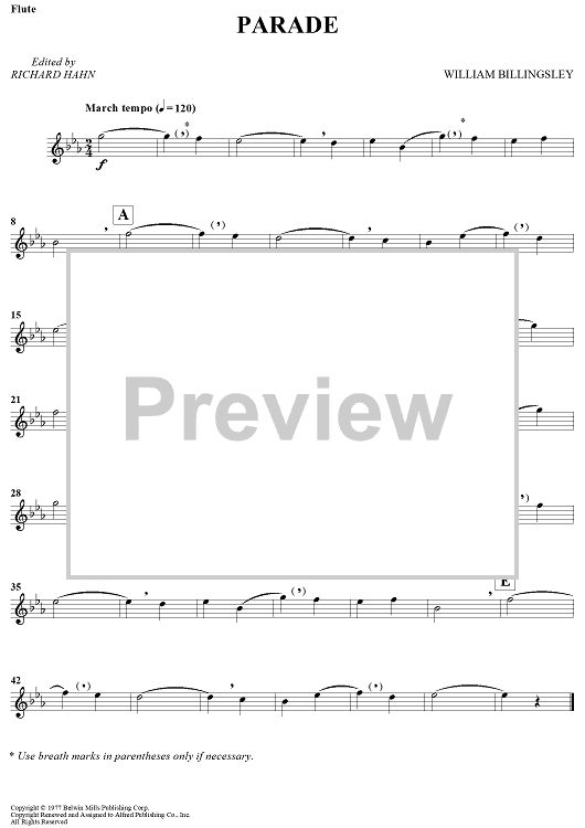 Digital Sheet Music for Parade by Richard Hahn, William Billingsley scored for C Flute/Piano; id:438025
