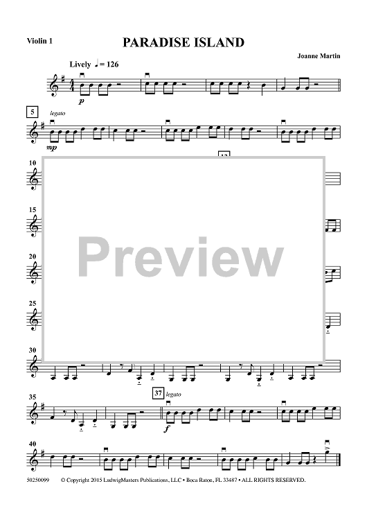 "Paradise Island - Violin 1" Sheet Music by Joanne Martin