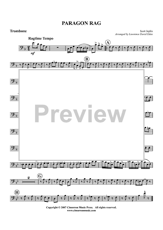 "Paragon Rag - Trombone" Sheet Music by Scott Joplin