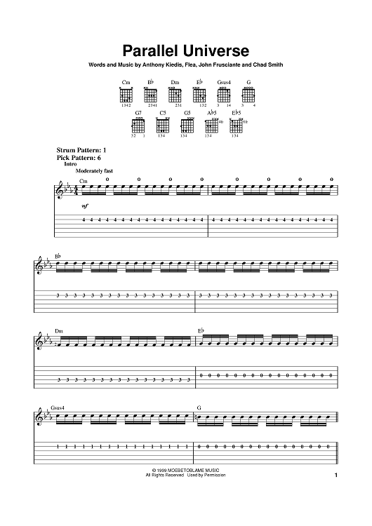 Digital Sheet Music for Parallel Universe by Flea, John Frusciante, Anthony Kiedis, Red Hot Chili Peppers scored for Easy Guitar Tab; id:374607
