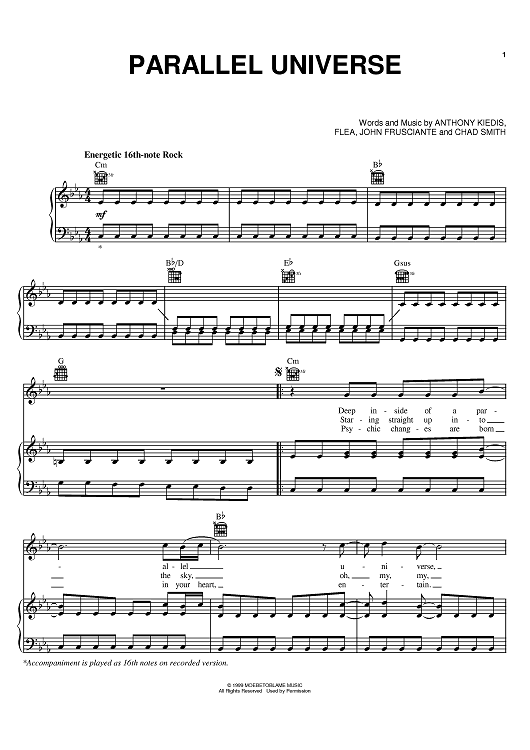 Digital Sheet Music for Parallel Universe by Flea, John Frusciante, Anthony Kiedis, Red Hot Chili Peppers, Chad Smith scored for Piano/Vocal/Chords; id:392326