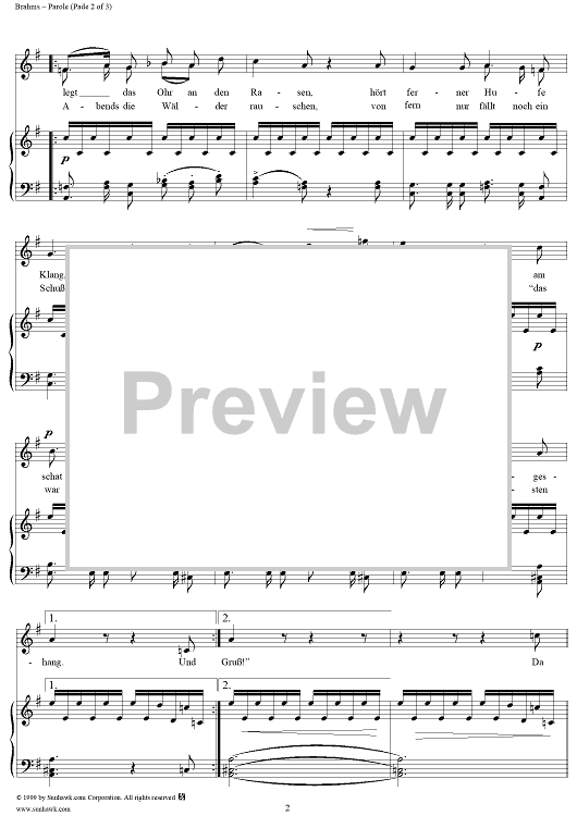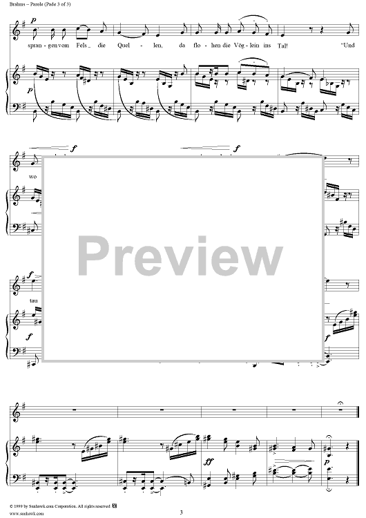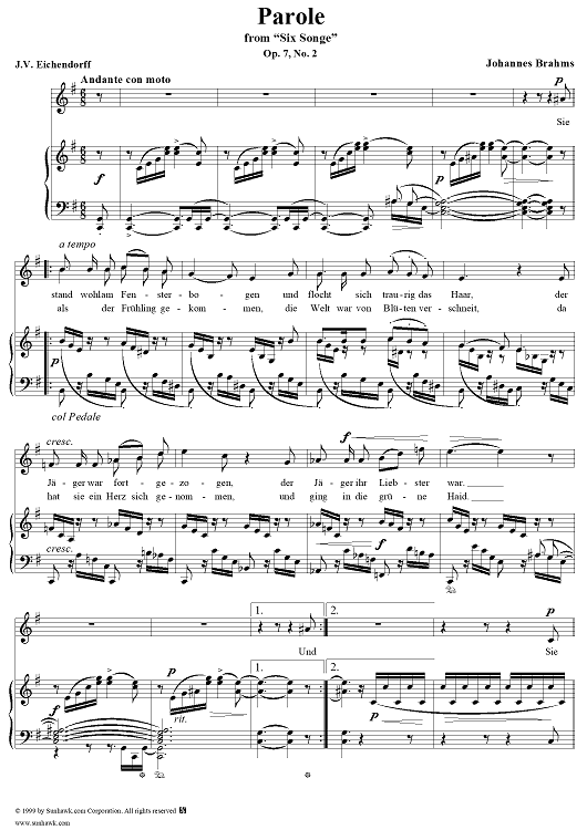 Digital Sheet Music for Parole - From "Six Songs" op. 7, no. 2 by Johannes Brahms, Joseph von Eichendorff scored for Voice/Piano; id:274387