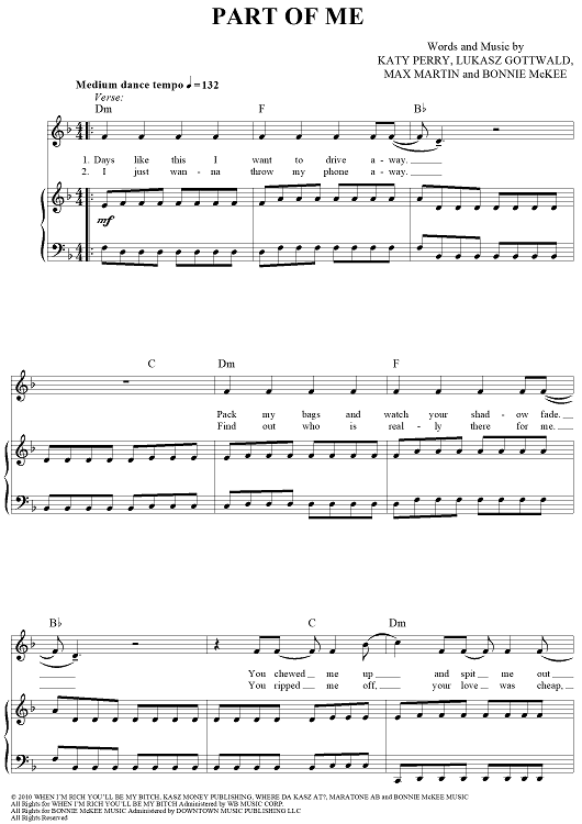 "Part Of Me" Sheet Music by Katy Perry
