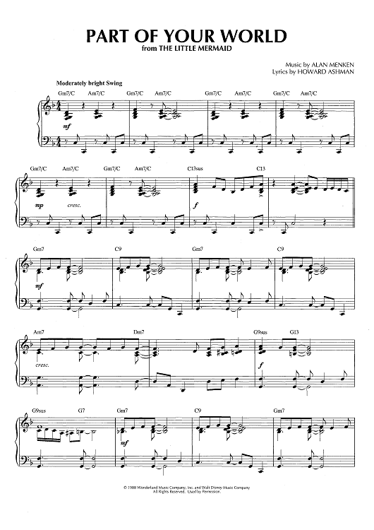 Digital Sheet Music for Part Of Your World - from The Little Mermaid by Alan Menken, Howard Ashman, Brent Edstrom scored for Piano Solo; id:466179