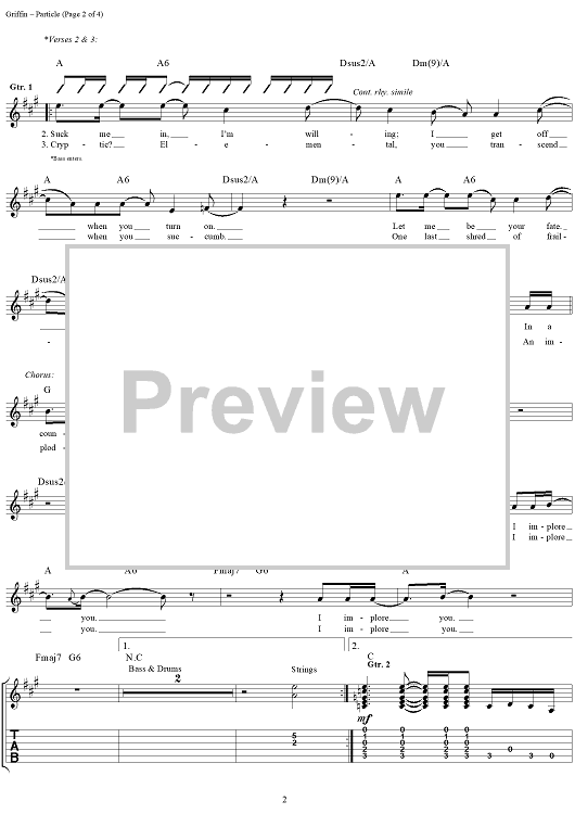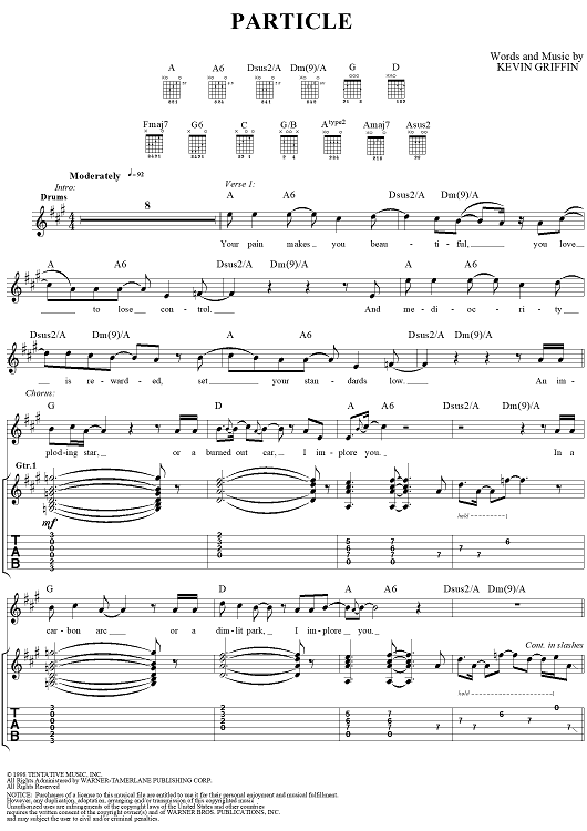 Digital Sheet Music for Particle by Better Than Ezra, Kevin Griffin scored for Guitar Tab/Vocal; id:112736