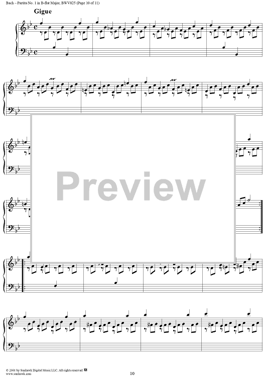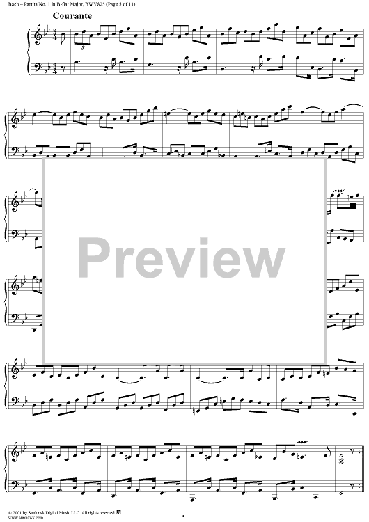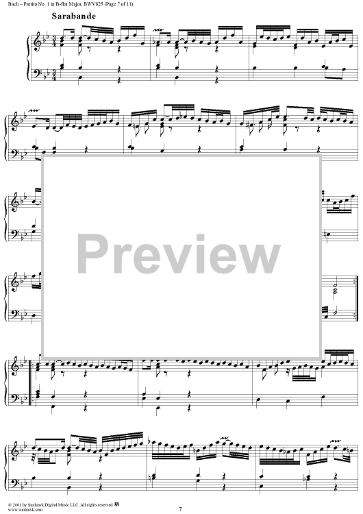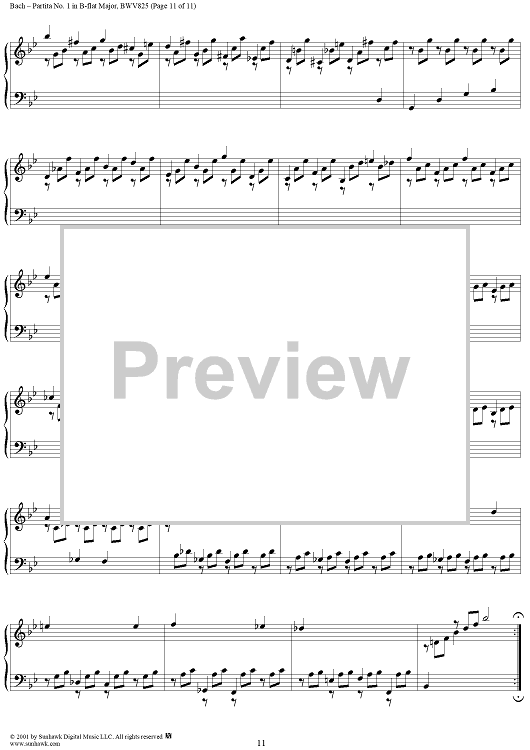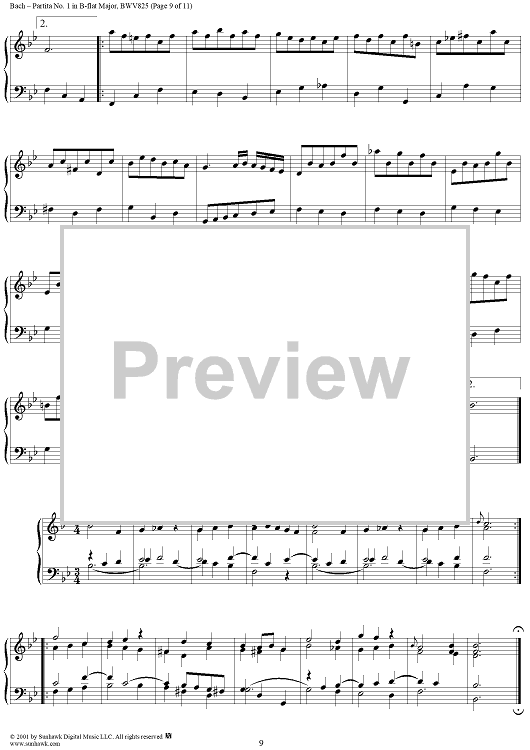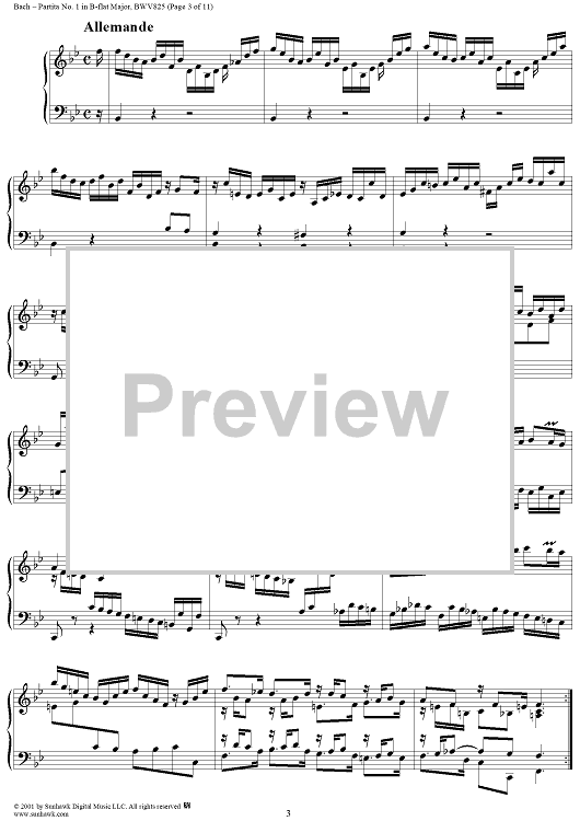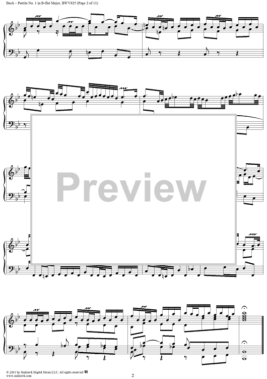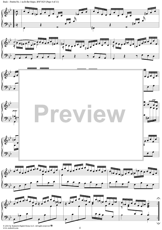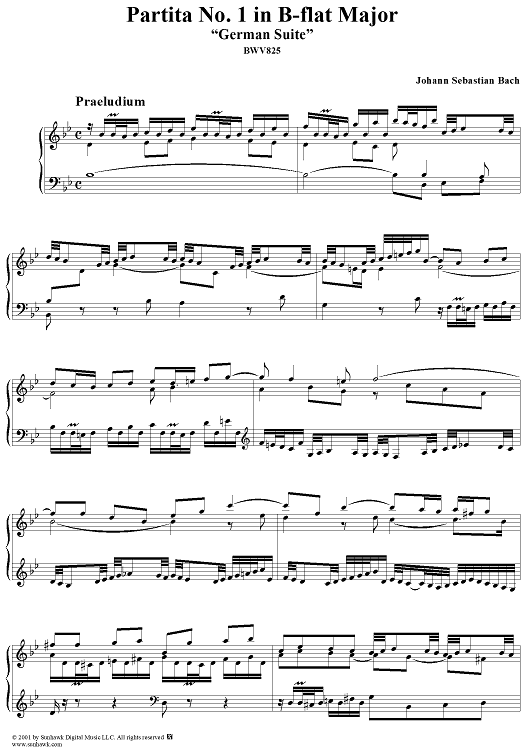 Digital Sheet Music for Partita No. 1 in B-flat Major, BWV 825 by Johann Sebastian Bach scored for Piano Solo; id:276223