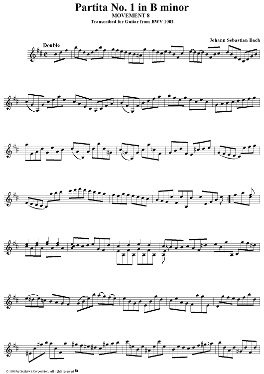 Digital Sheet Music for Partita no. 1 in B minor: Eighth Movement by Johann Sebastian Bach scored for Guitar Solo; id:95834