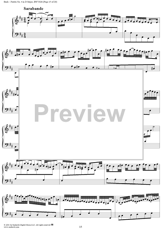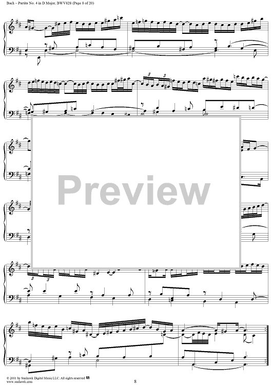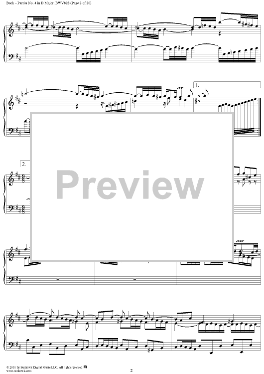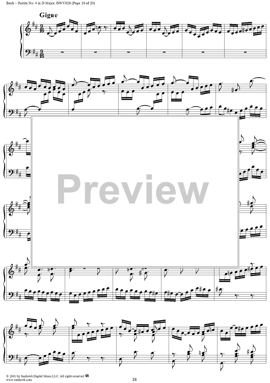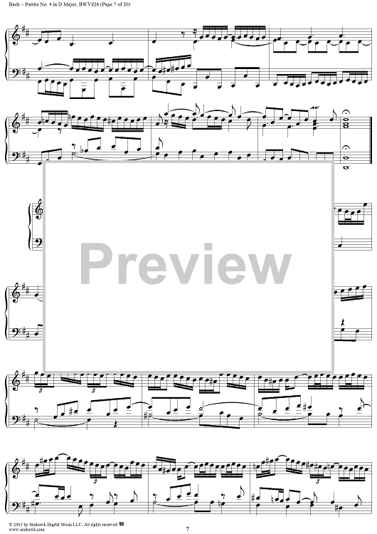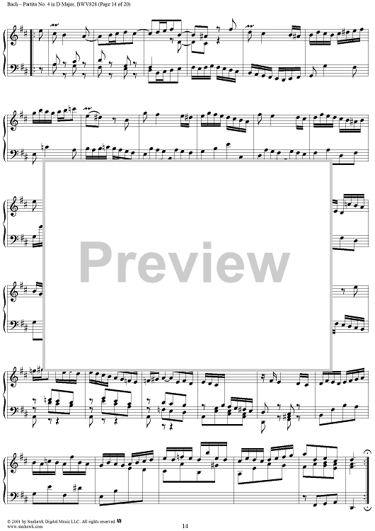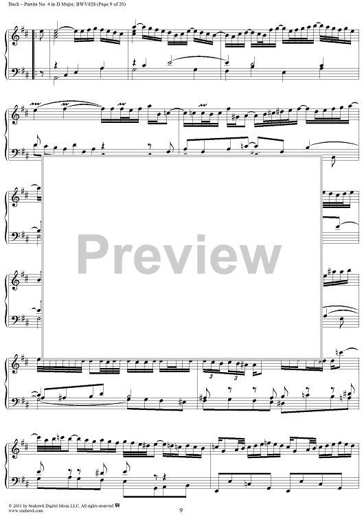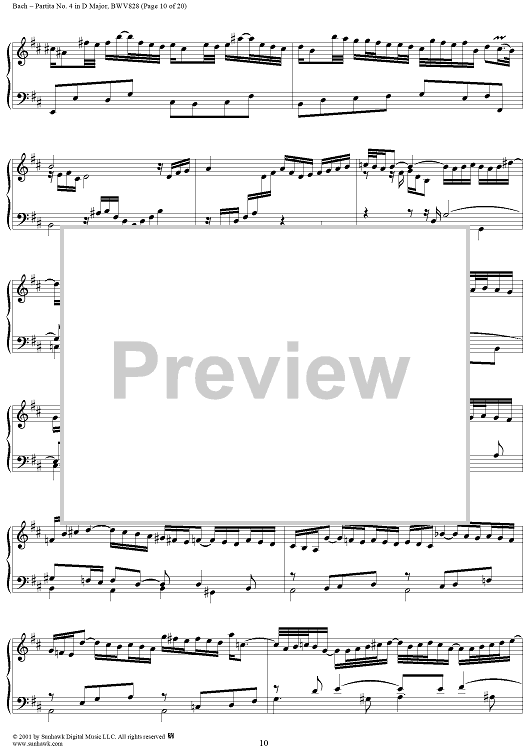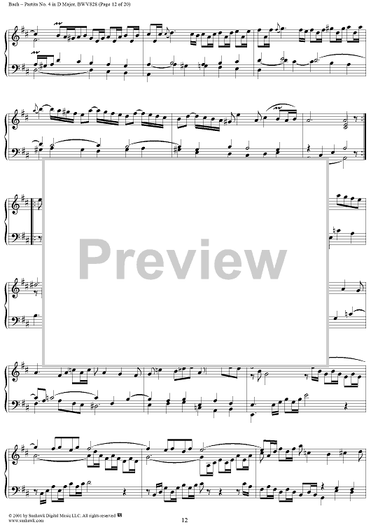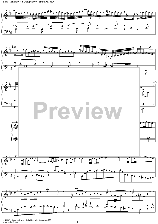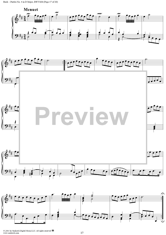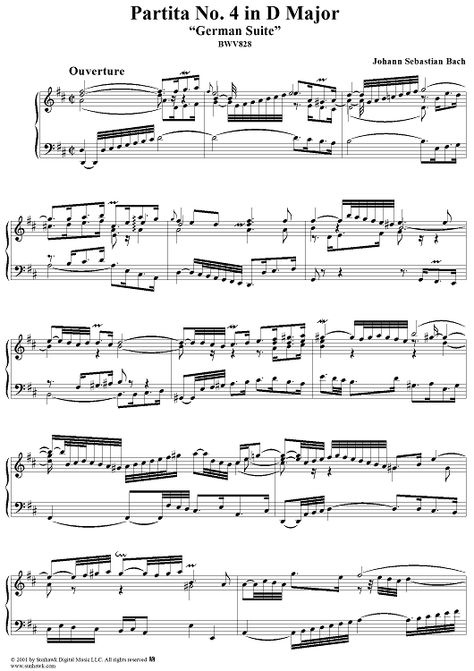 Digital Sheet Music for Partita No. 4 in D Major, BWV 828 by Johann Sebastian Bach scored for Piano Solo; id:276225