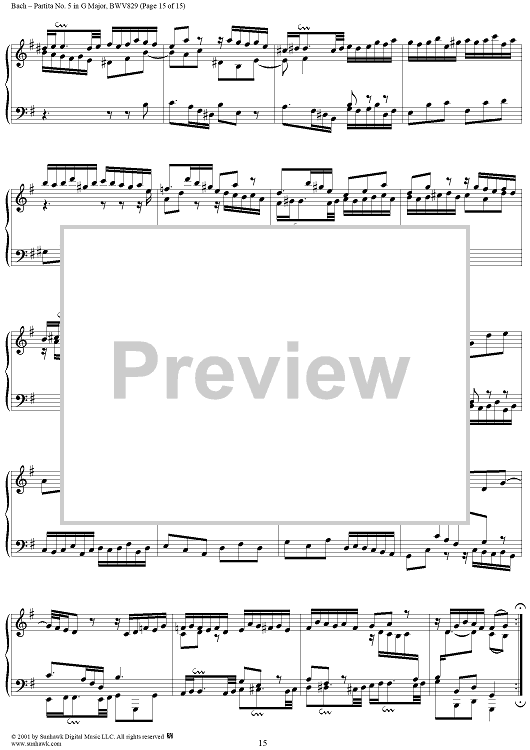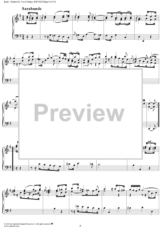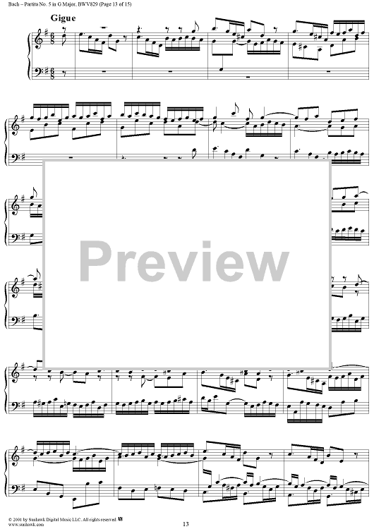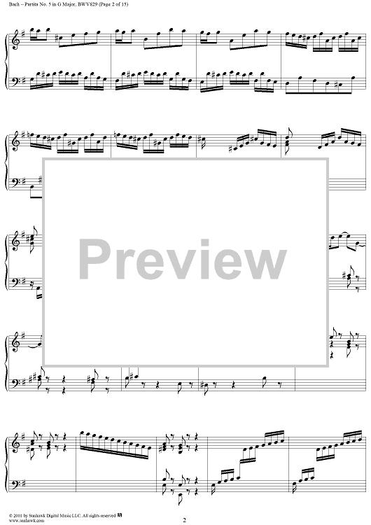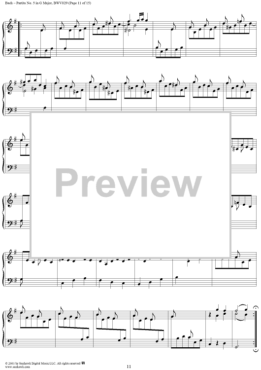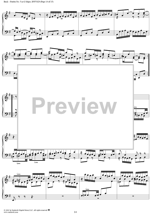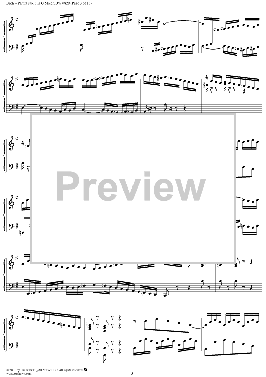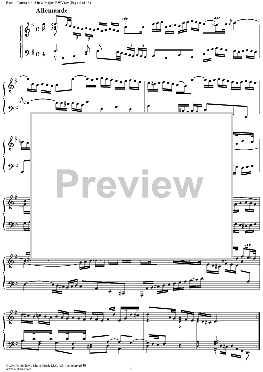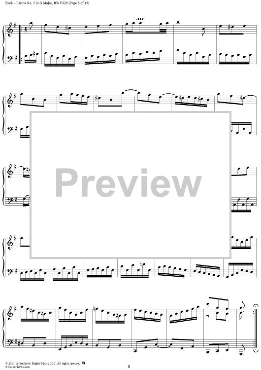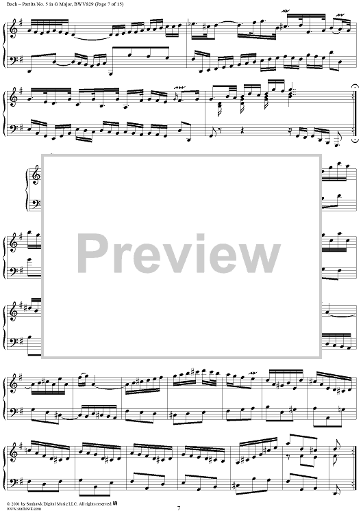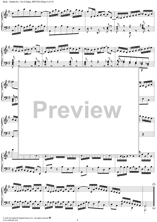 Digital Sheet Music for Partita No. 5 in G Major, BWV 829 by Johann Sebastian Bach scored for Piano Solo; id:276227