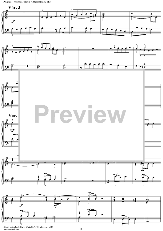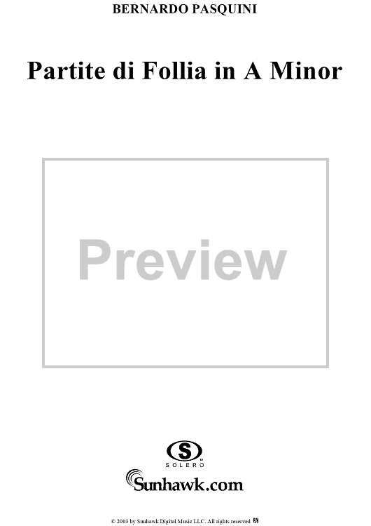 Digital Sheet Music for Partite di Follia in A Minor by Bernardo Pasquini scored for Piano Solo; id:294846
