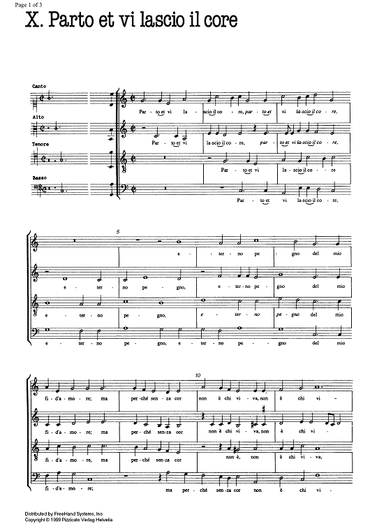 "Parto et vi lascio il core" Sheet Music by Marc' Antonio Pordenon