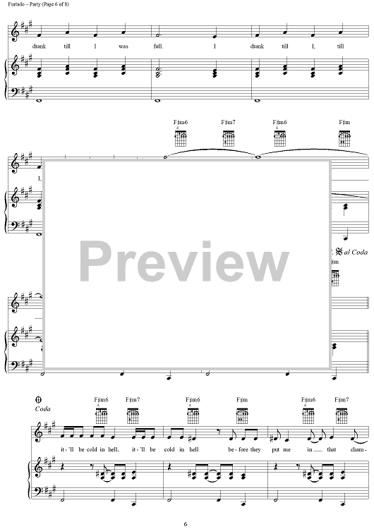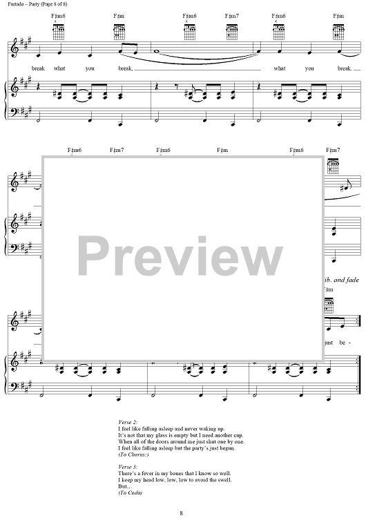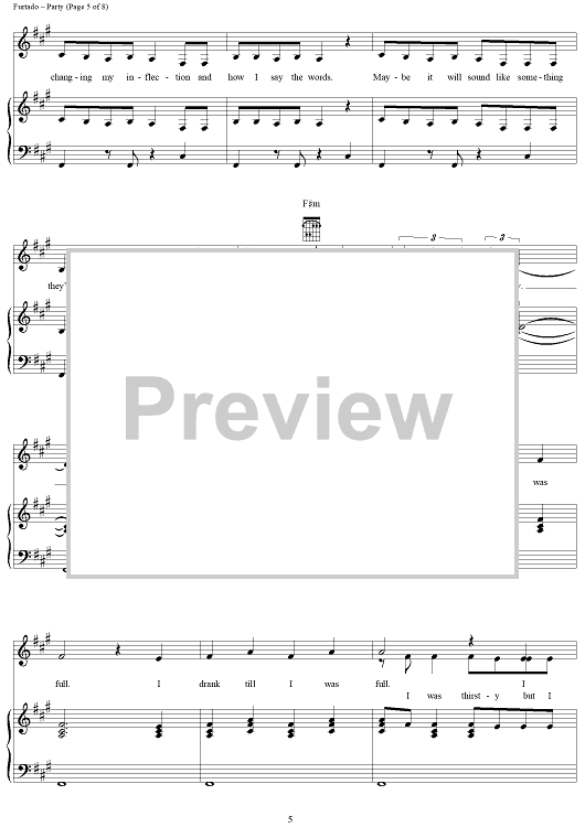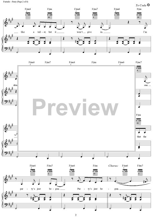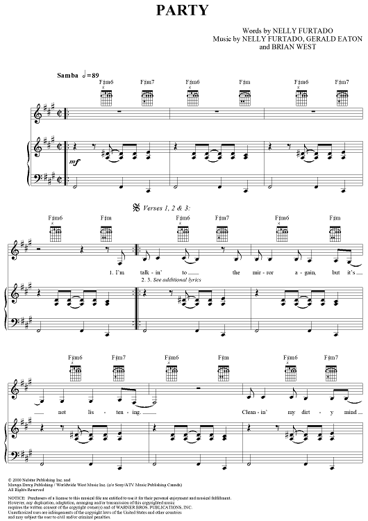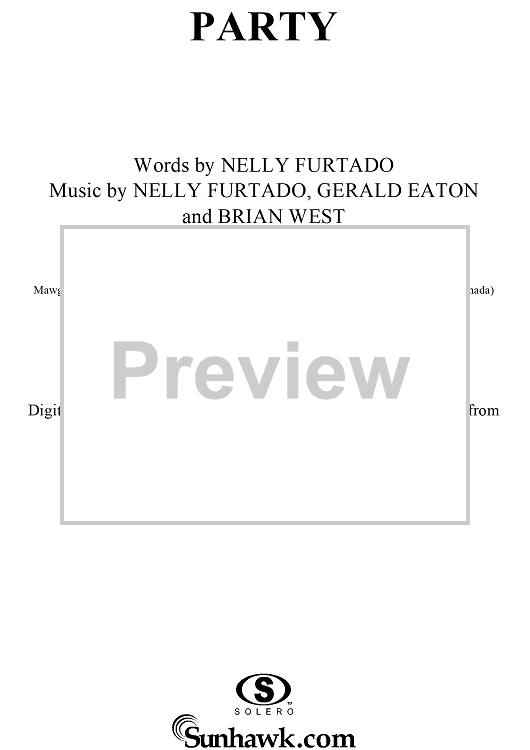 Digital Sheet Music for Party by Nelly Furtado, Gerald Eaton, Brian West scored for Piano/Vocal/Chords; id:286605
