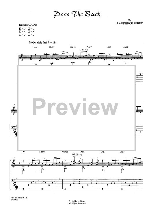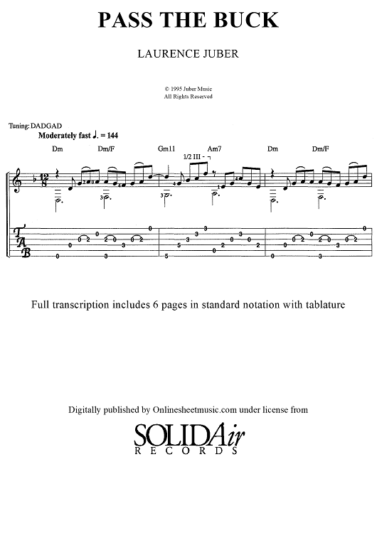 Digital Sheet Music for Pass The Buck (With Embedded Audio) by , Laurence Juber scored for Guitar Tab; id:452051