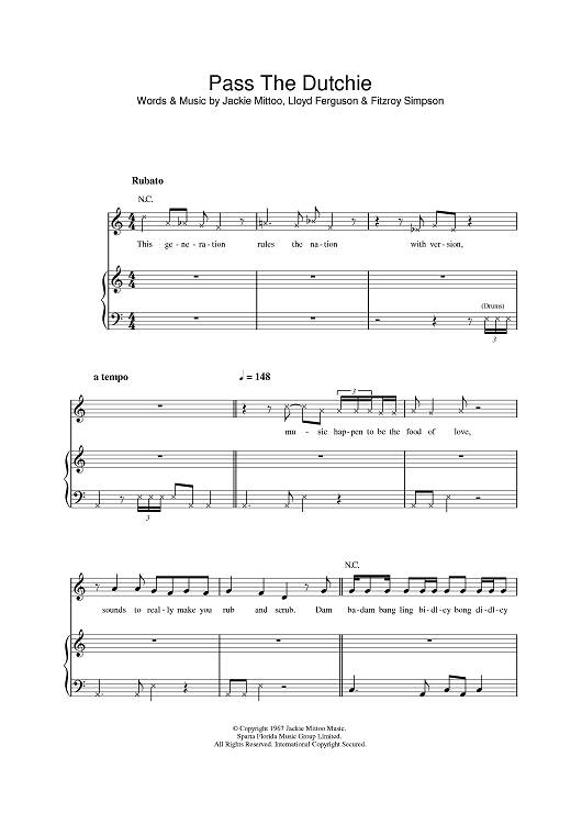 Digital Sheet Music for Pass The Dutchie by Lloyd Ferguson, Jackie Mittoo, Musical Youth, Fitzroy Simpson scored for Piano/Vocal/Chords; id:388358