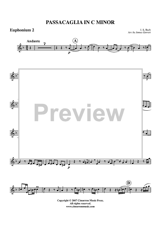 Digital Sheet Music for Passacaglia in C Minor - Euphonium 2 BC/TC by , James Garrett, Johann Sebastian Bach scored for Tuba Ensemble; id:416721