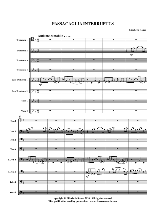 Digital Sheet Music for Passacaglia Interruptus - Score by Elizabeth Raum scored for Brass Ensemble; id:410104