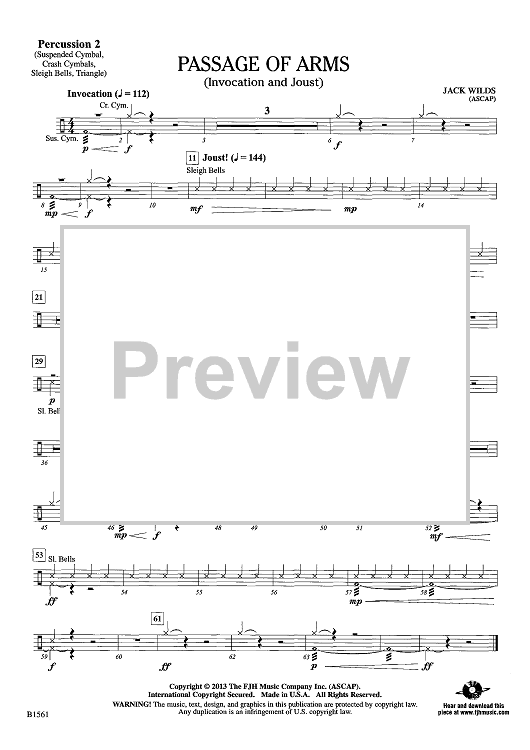 Digital Sheet Music for Passage of Arms - Percussion 2 by Jack Wilds scored for Concert Band; id:440350
