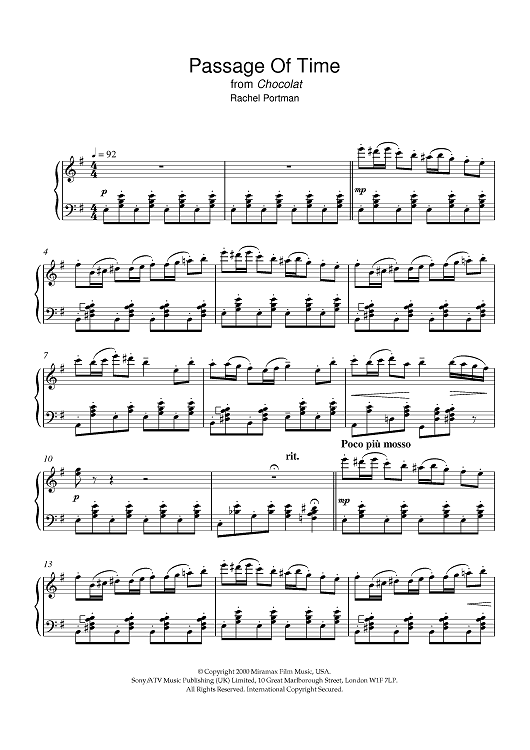 Digital Sheet Music for Passage Of Time by Rachel Portman scored for Piano; id:377622