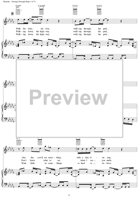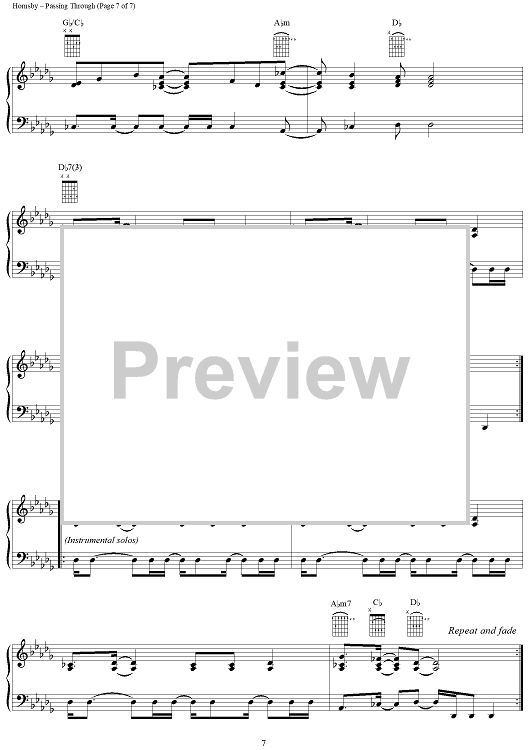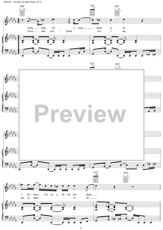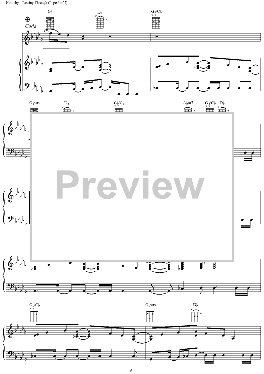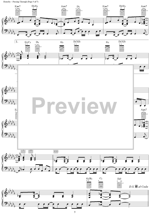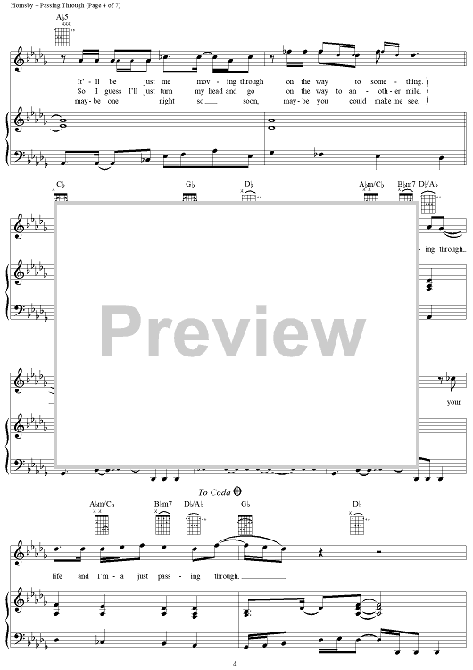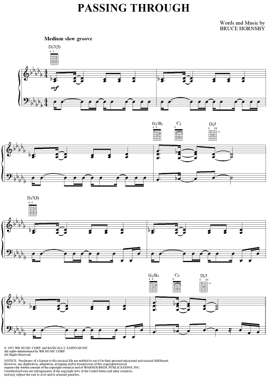 Digital Sheet Music for Passing Through by Bruce Hornsby scored for Piano/Vocal/Chords; id:141339