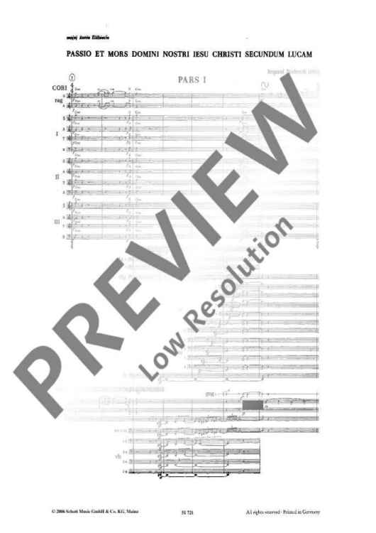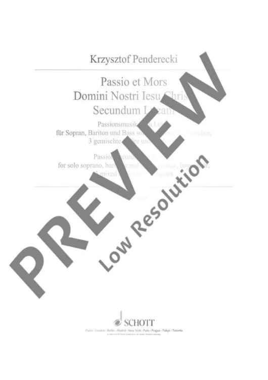 Digital Sheet Music for Passio Et Mors Domini Nostri Jesu Christi Secundum Lucam - Full Score by Krzysztof Penderecki scored for Soprano, Baritone, Bass, Speaker, Boys' Choir, 3 Mixed Choirs (satb) And Orchestra; id:492324