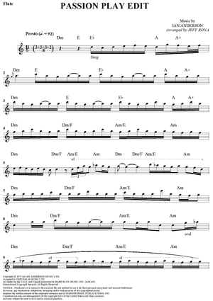 Digital Sheet Music for Passion Play Edit by Ian Anderson, Jeff Rona, Jethro Tull scored for Flute/Guitar; id:277146
