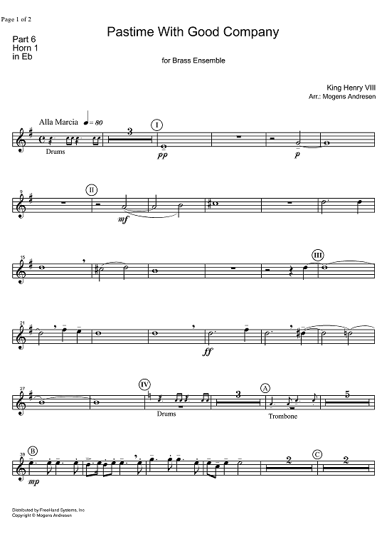Digital Sheet Music for Pastime With Good Company - Horn in E-flat by Mogens Andresen, Henry VIII scored for Brass Ensemble; id:327800