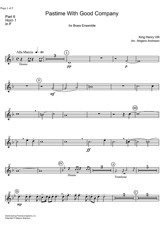 Digital Sheet Music for Pastime With Good Company - Horn in F by Mogens Andresen, Henry VIII scored for Brass Ensemble; id:327801
