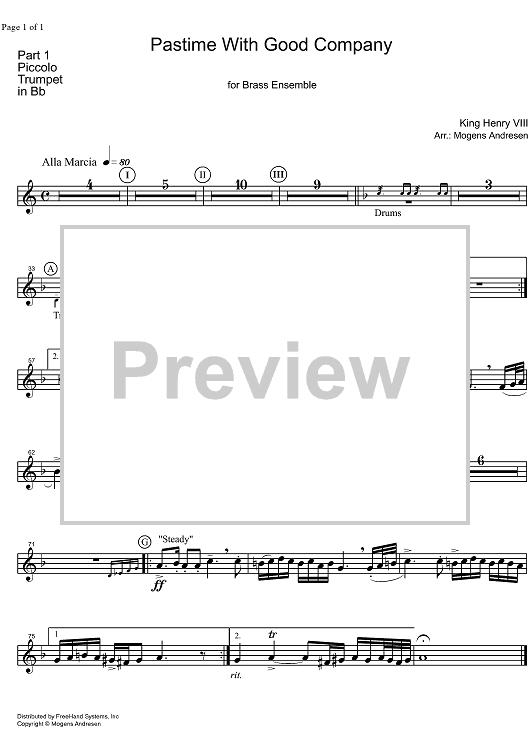 Digital Sheet Music for Pastime With Good Company - Piccolo Trumpet by Mogens Andresen, Henry VIII scored for Brass Ensemble; id:327806
