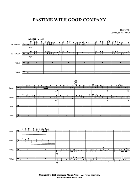 Digital Sheet Music for Pastime with Good Company - Score by Tim Olt, Henry VIII scored for Tuba Quartet; id:413722